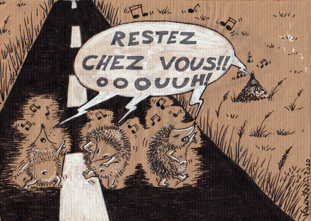 Quelques desssins, réalisés durant et à propos du confinement à paraître dans un album cartonné broché